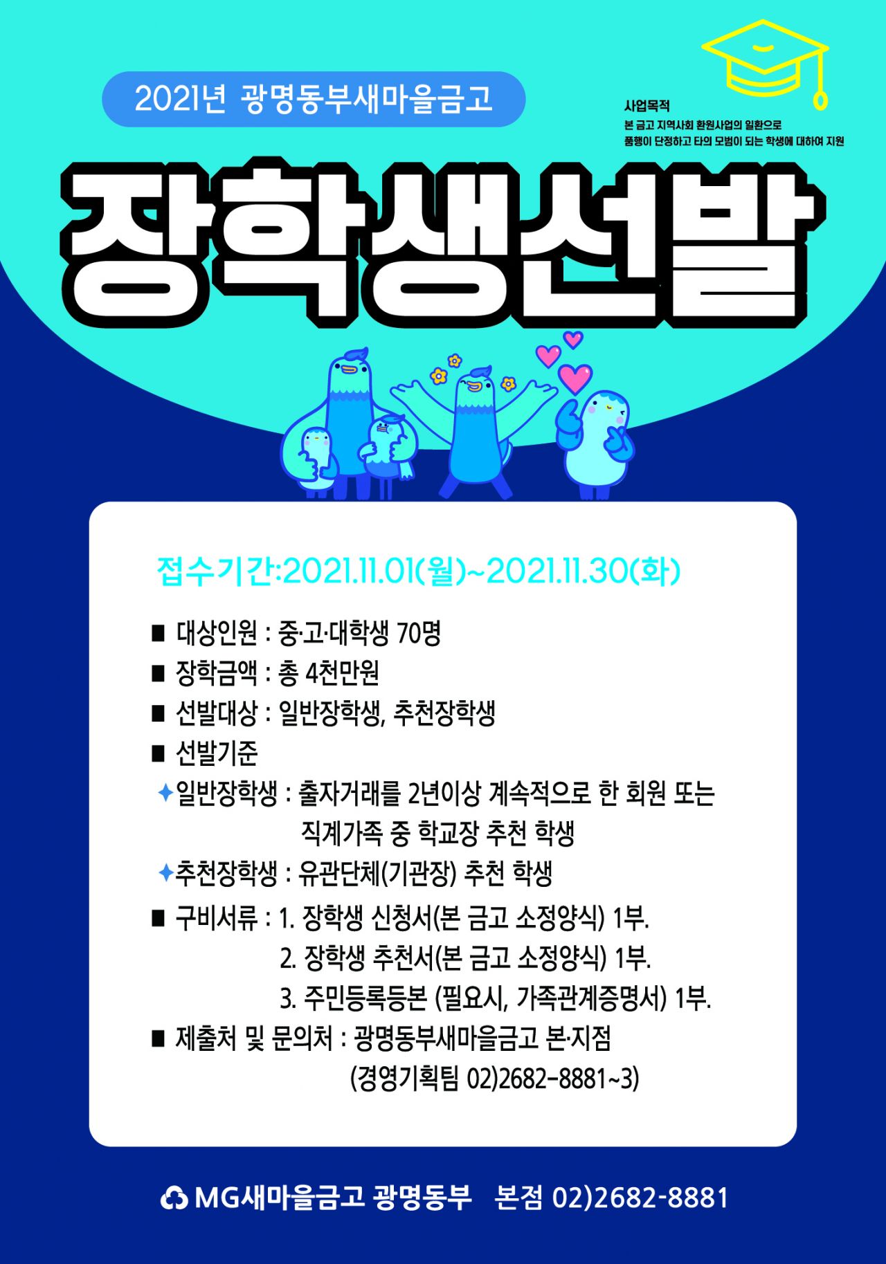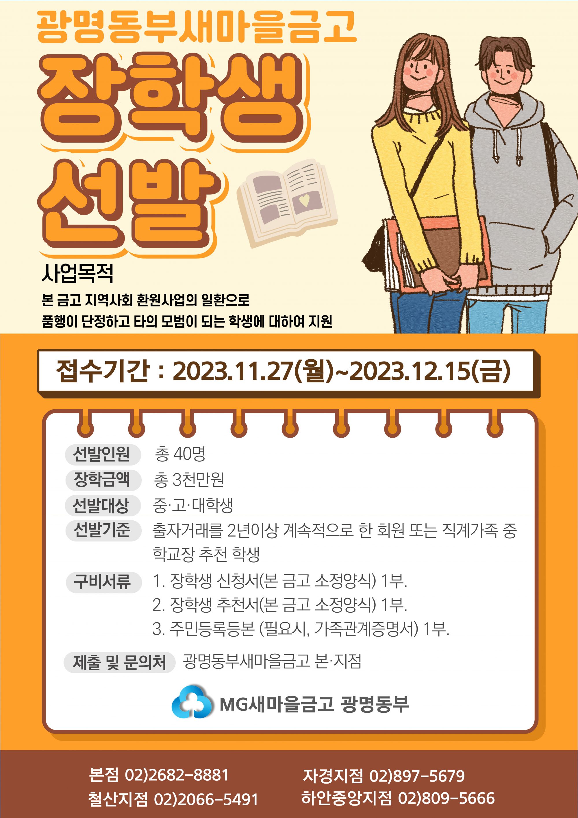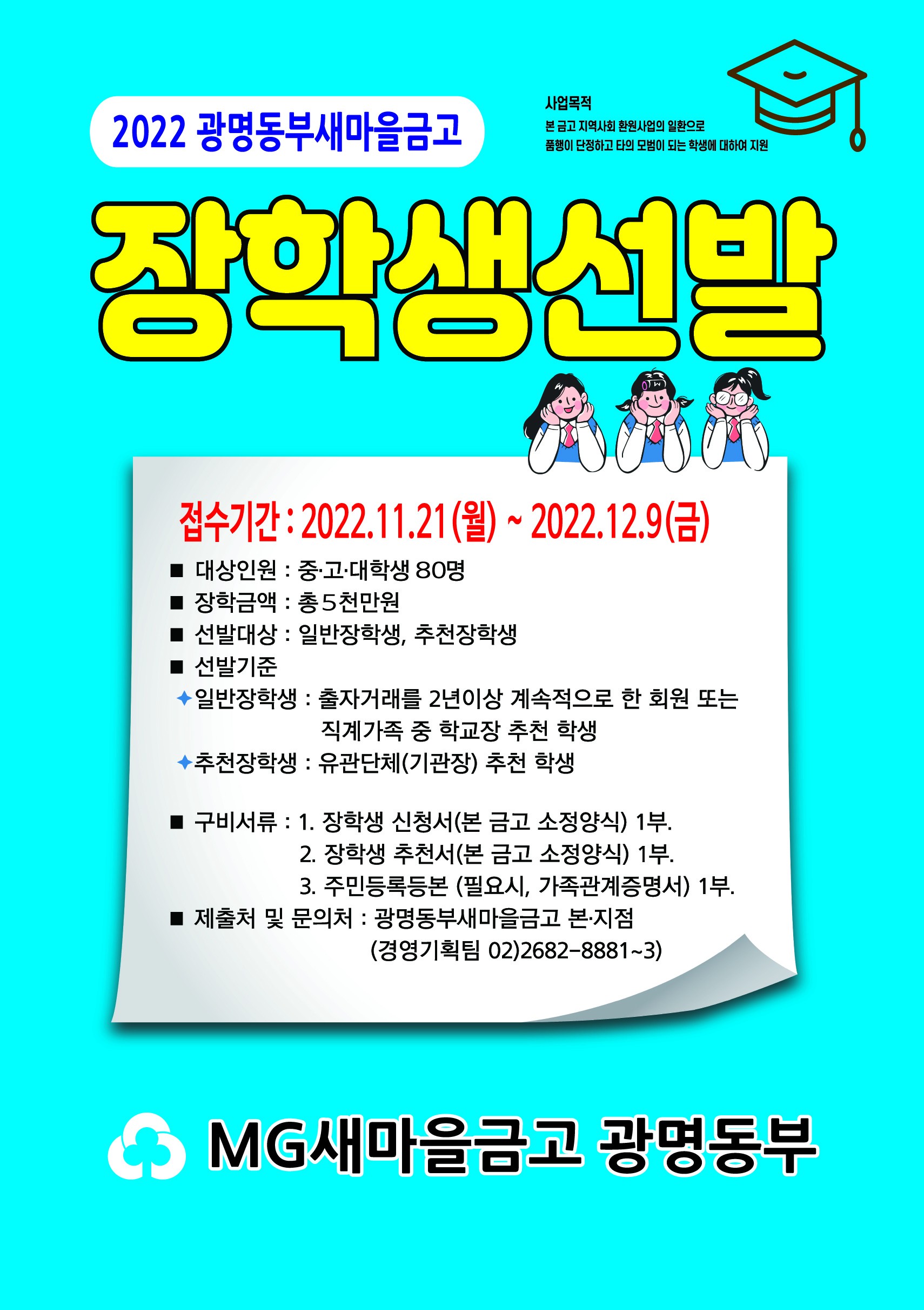 본 금고에서는 우리 이웃의 자녀들에게 학자금을 지원하여 국가와 지역사회를 이끌 어 갈 우수인재 양성에 기여하고 있습니다.