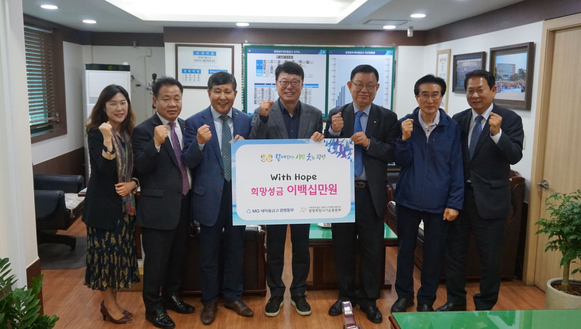 새마을금고와 함께만들어 가는 행복한 나눔 문화를 위하여 도움의 손길을 필요로 하는 지역사회의 어려운 이웃들을 직접 찾아가 나눔의 사랑을 실천하면서, 어려운 환경의 지역주민들의 친근한 벗으로 함께 하고 있습니다.